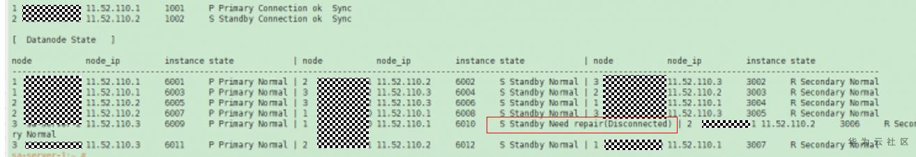 集群不用查看集群状态dn6027处于pending need repair状态,dn6028处于standby promoting状态