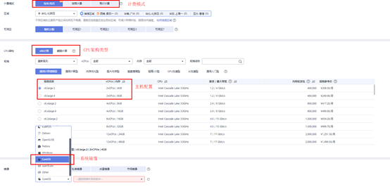 购买弹性云服务器ECS时,可以按需选择主机的计费模式,主机配置,操作系统等属性。