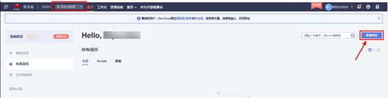 通过华为云软件开发平台(DevCloud)进入华为云DevCloud后,可以直接新建项目。