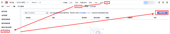 点击项目“demo”顶部右侧的 “设置”下的“通用设置”。然后在通用设置页面左侧菜单栏选择“主机组管理”,点击“新建主机组”按钮添加主机组。