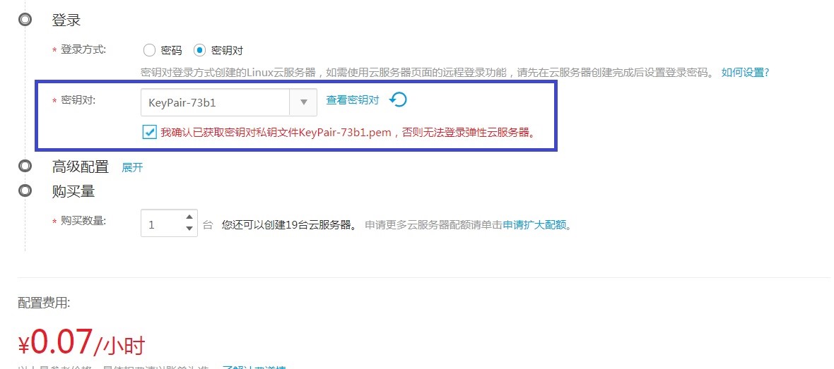 在创建主机的时候可以选择通过设置“密码”登录,也可以通过“密钥对”登录。今天这里讲的就是如何通过密钥对来登录主机。