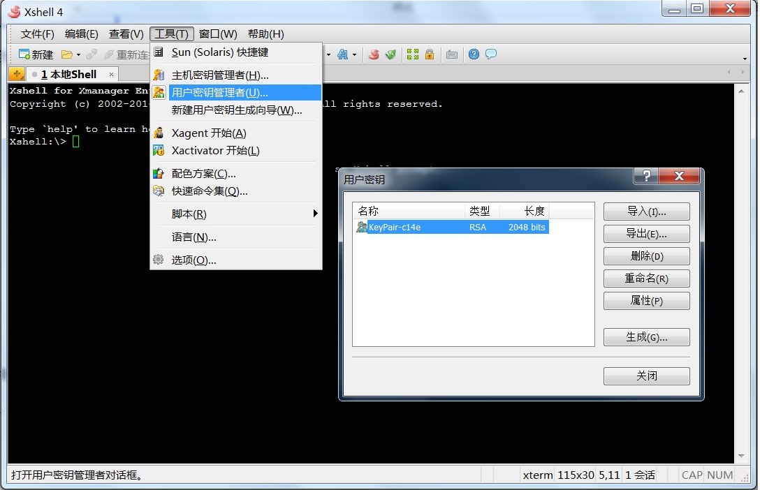 这里通过Xshell工具来进行演示密钥登录主机。(注:Xshell工具比较方便,可百度搜索下载。)
