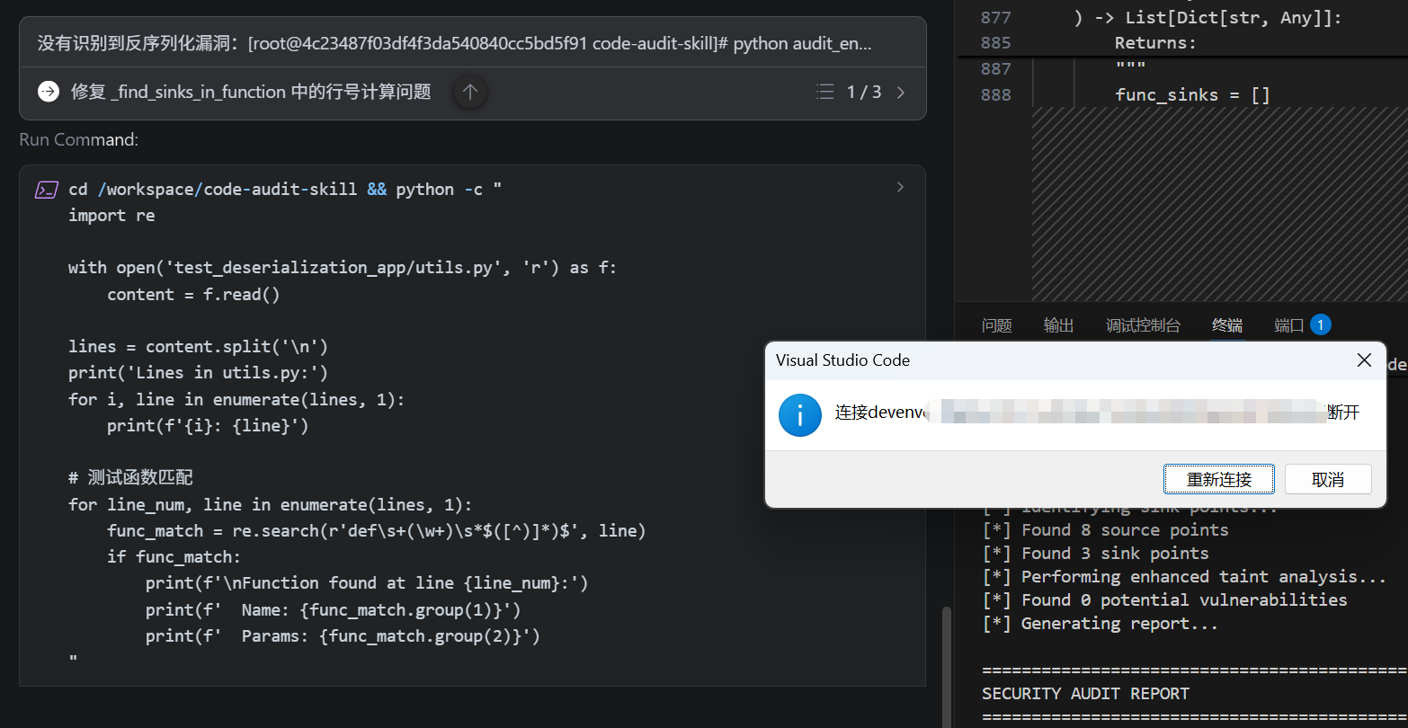 【用户体验】【CodeArts Doer体验官】vscode端连接云容器,使用CodeArts Doer生成代码时,经常性的连接中断 已实现 编辑 删除