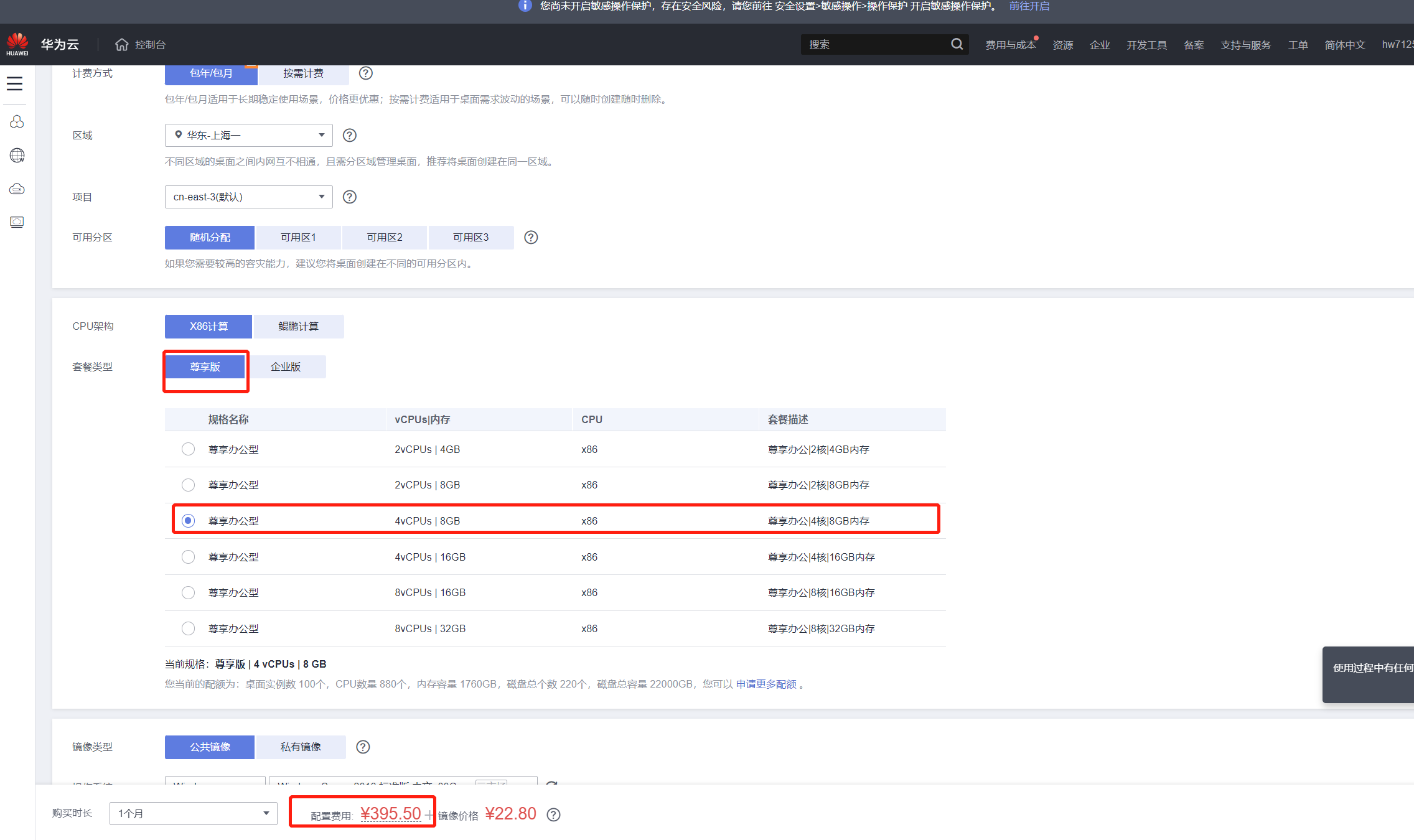 在华为云云桌面购买阶段,套餐类型分为尊享版和企业版,但是当选择相同内存和cpu的规格时,价格却不相同,建议说明尊享版和企业版的区别,方便买家购买合适的规格和类型