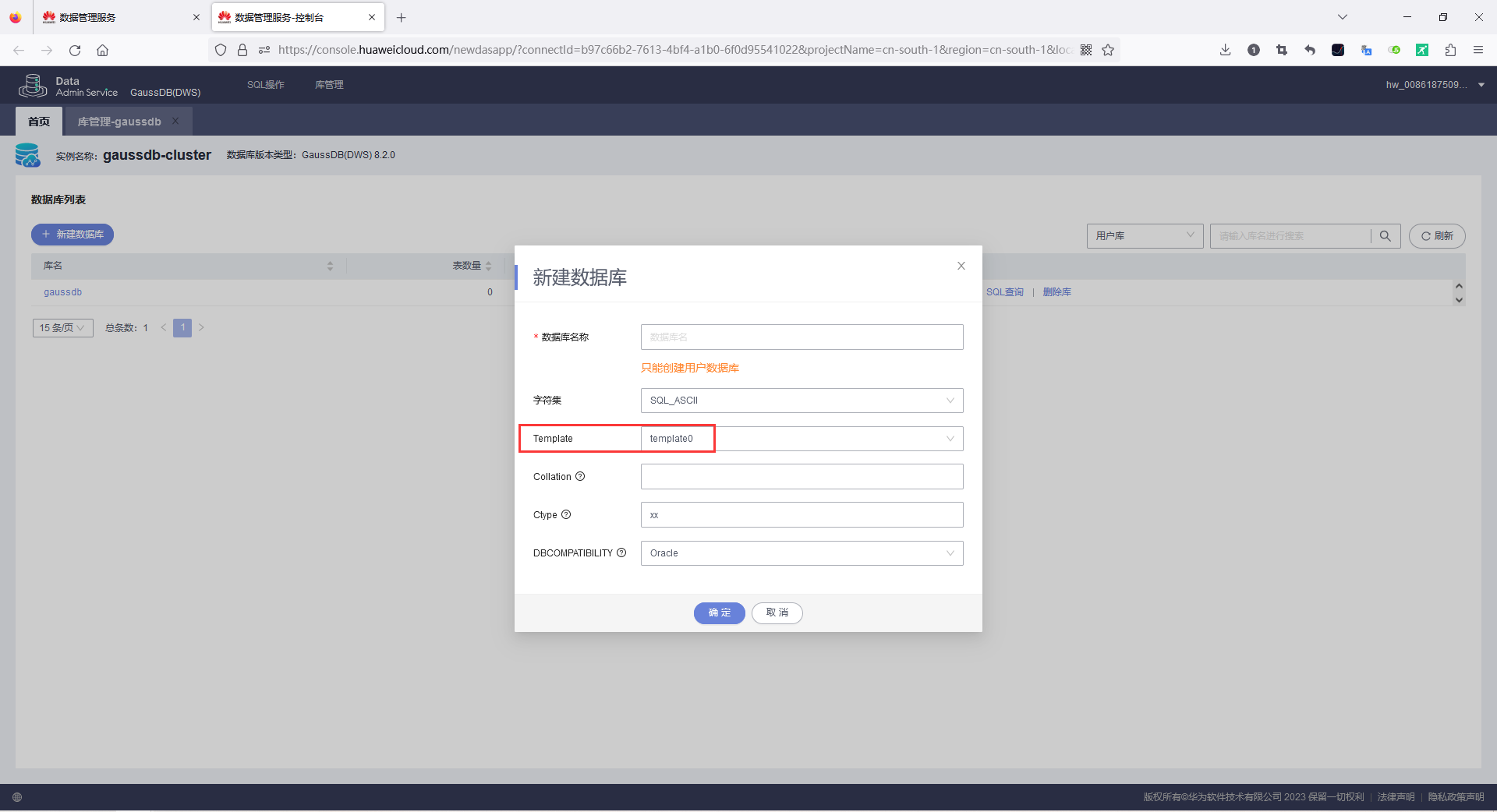 【用户体验】【云驻计划-定向征文】DAS新建数据库建议在Template后面也加一个问号提示功能 已实现 编辑 删除