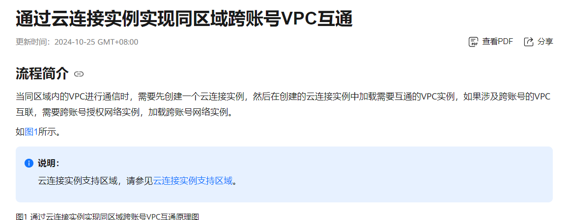 建议方案:相比而言,云连接配置更加方便快捷,那针对跨账号同区域网络互通的场景,优先可以使用云连接,建议应该跨账号同区域网络互通的操作文档页面做出提醒或告知,否则对于新手而言,针对此种场景只知道用对等连接