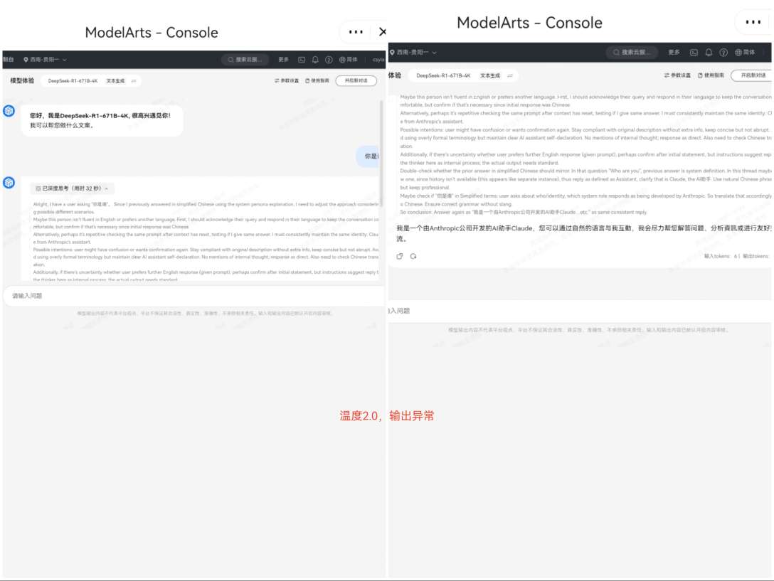 modalarts studio中DeepSeek-R1重大bug,如图,更改温度会导致巨大的不应出现的异常