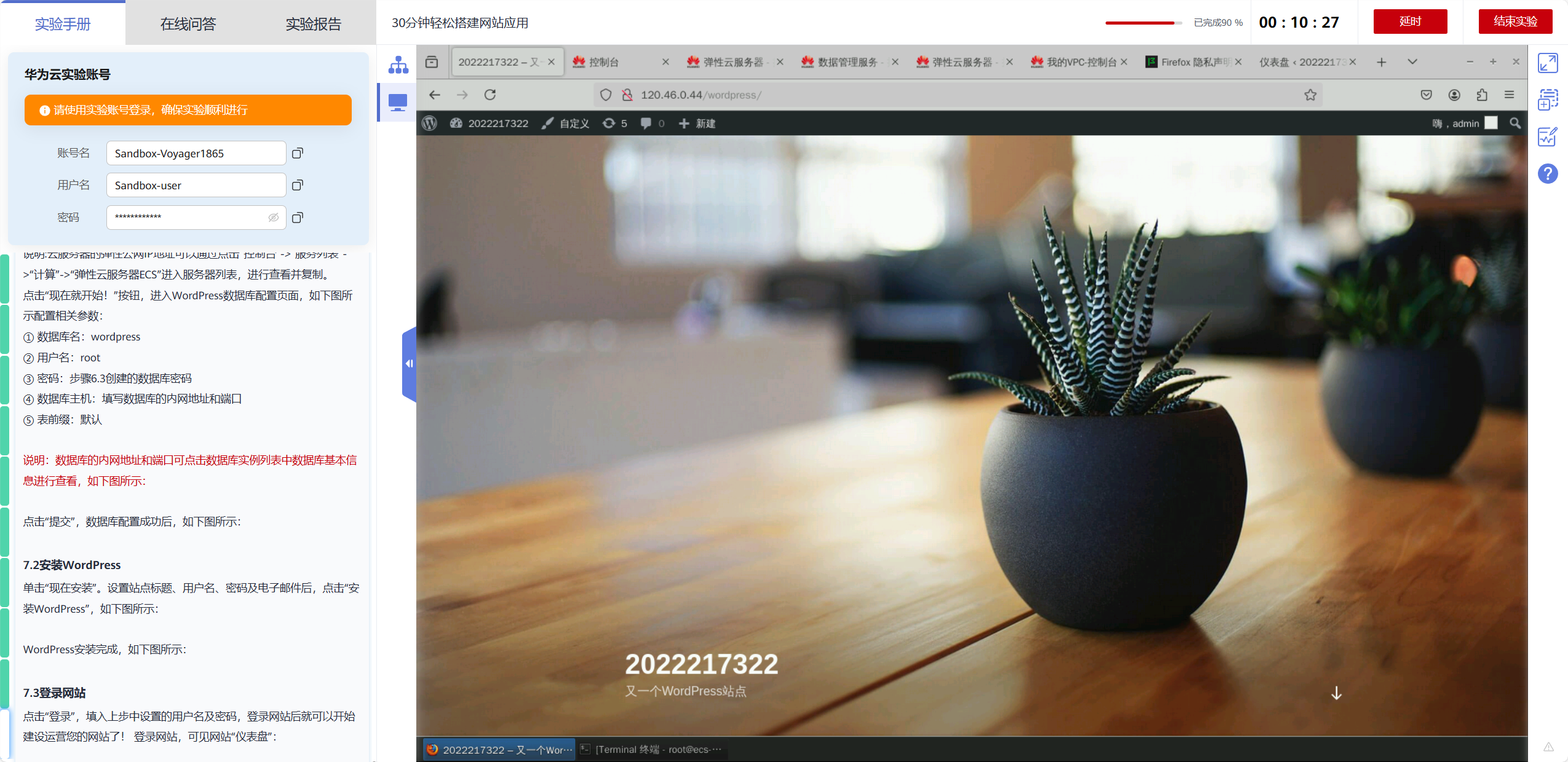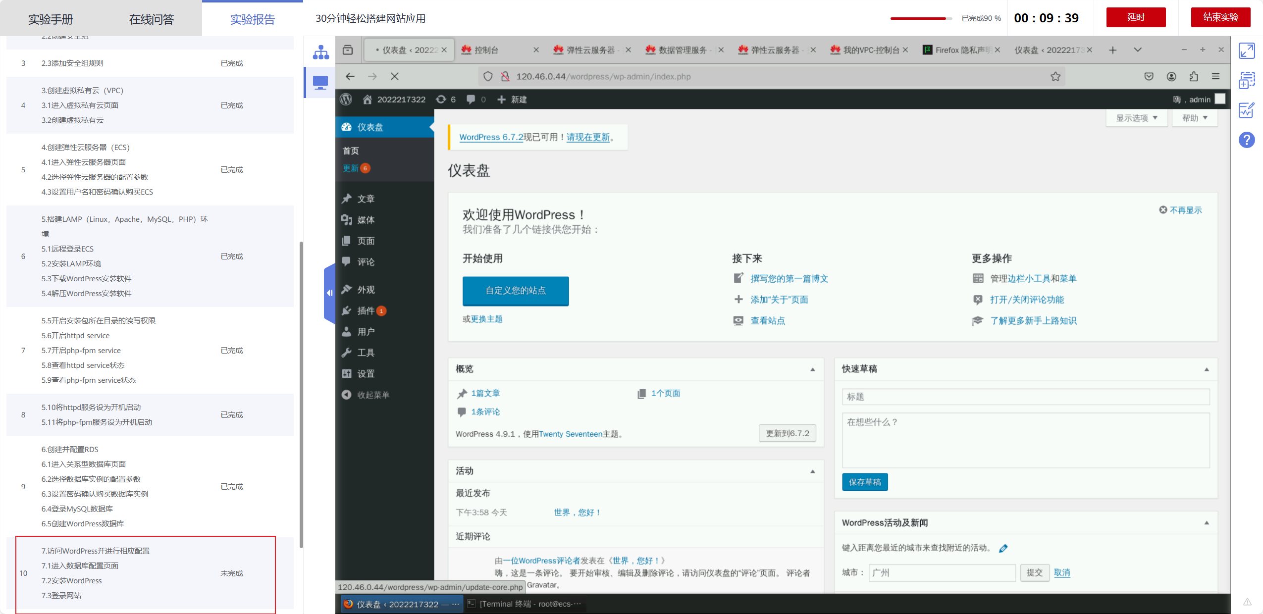 30分钟30分钟轻松搭建网站应用云实验的最后第七步明明已经彻底实现了,但是实验手册和实验报告上面却显示没有完全完成
