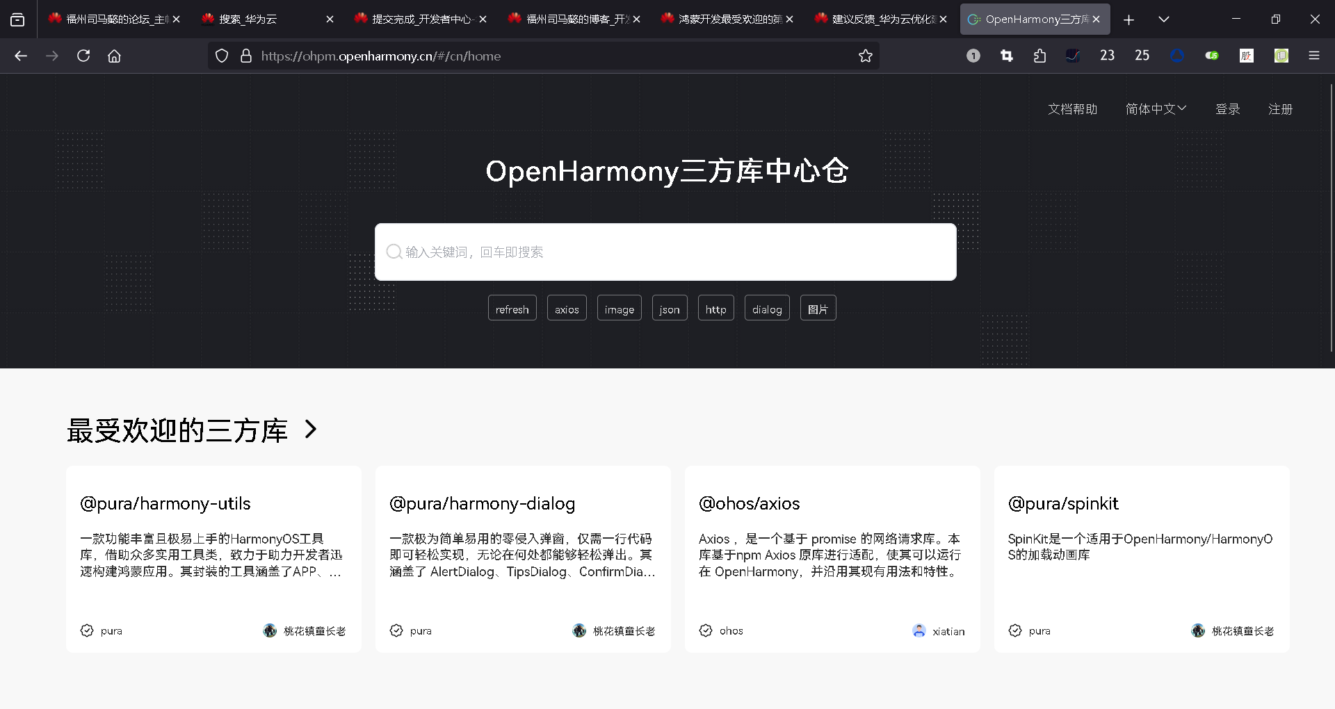 超链接如下:https://ohpm.openharmony.cn/#/cn/home