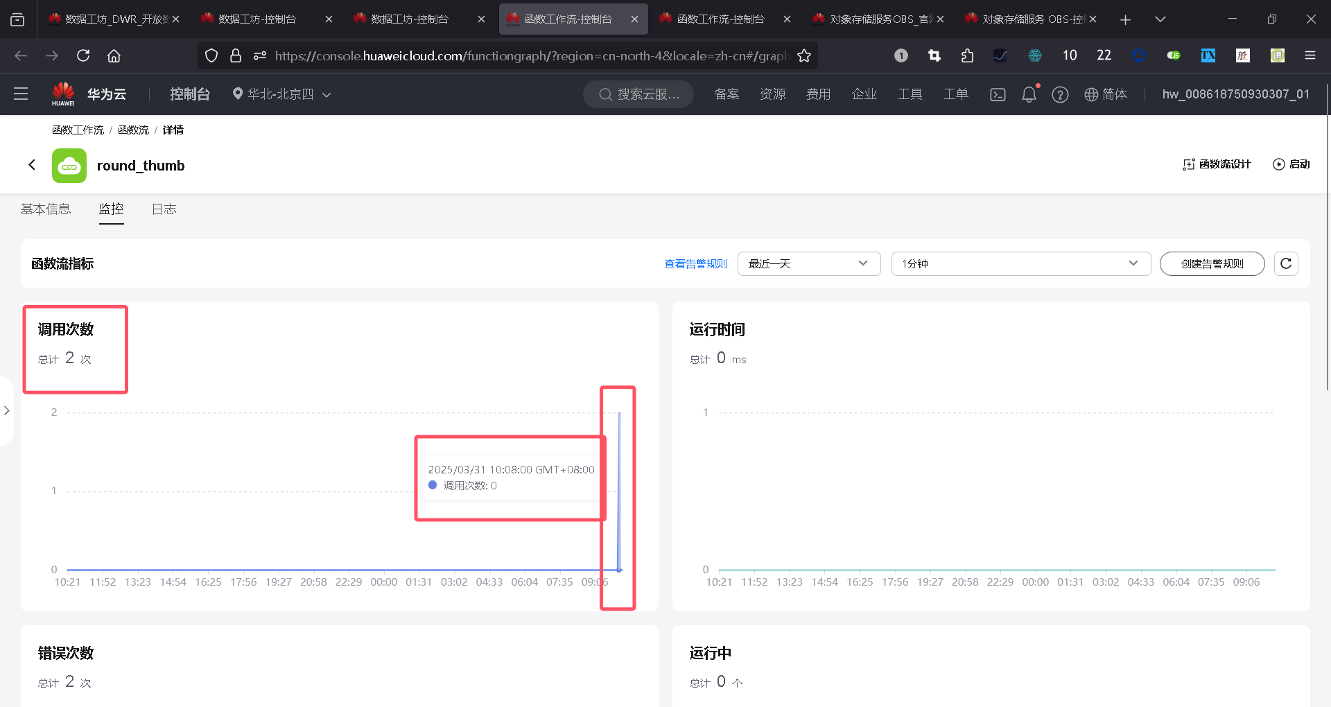 场景描述:函数工作流的图表左侧明明显示调用了2次,但是鼠标移动到曲线位置,还是显示0次调用。