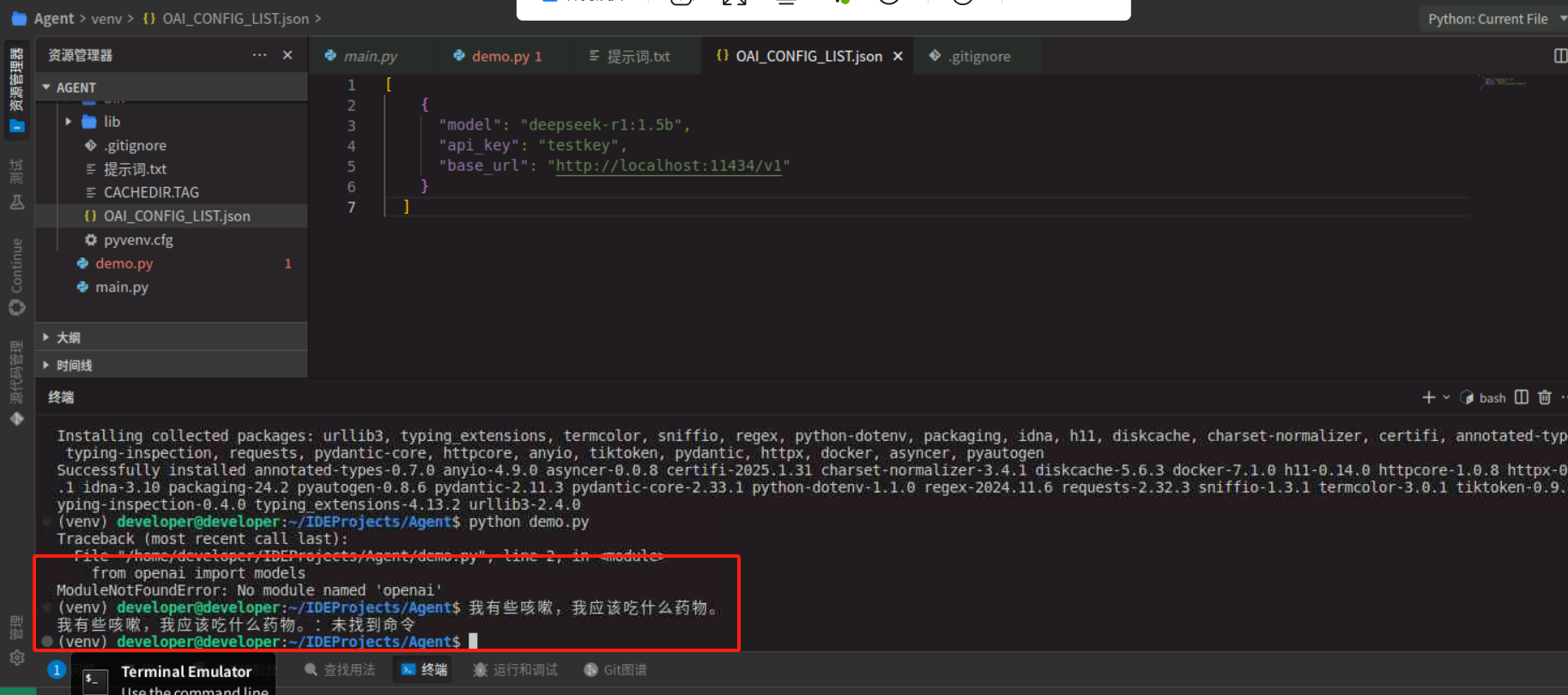 【开发者空间体验官】基于DeepSeek搭建Agent智能助手,使用代码操作不成功