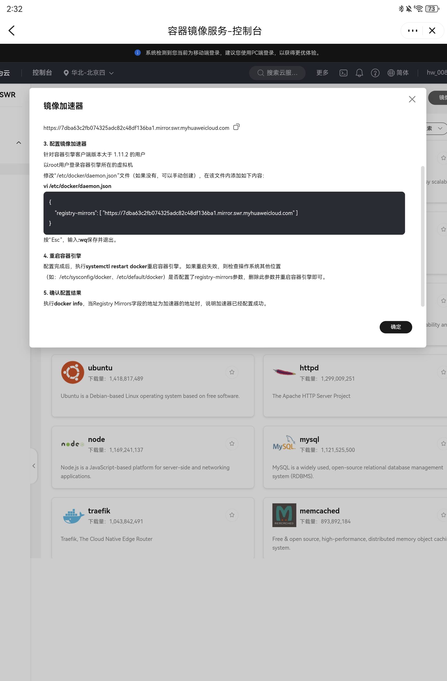【用户体验】容器镜像服务swr中镜像加速器教程优化建议 已实现 编辑 删除
