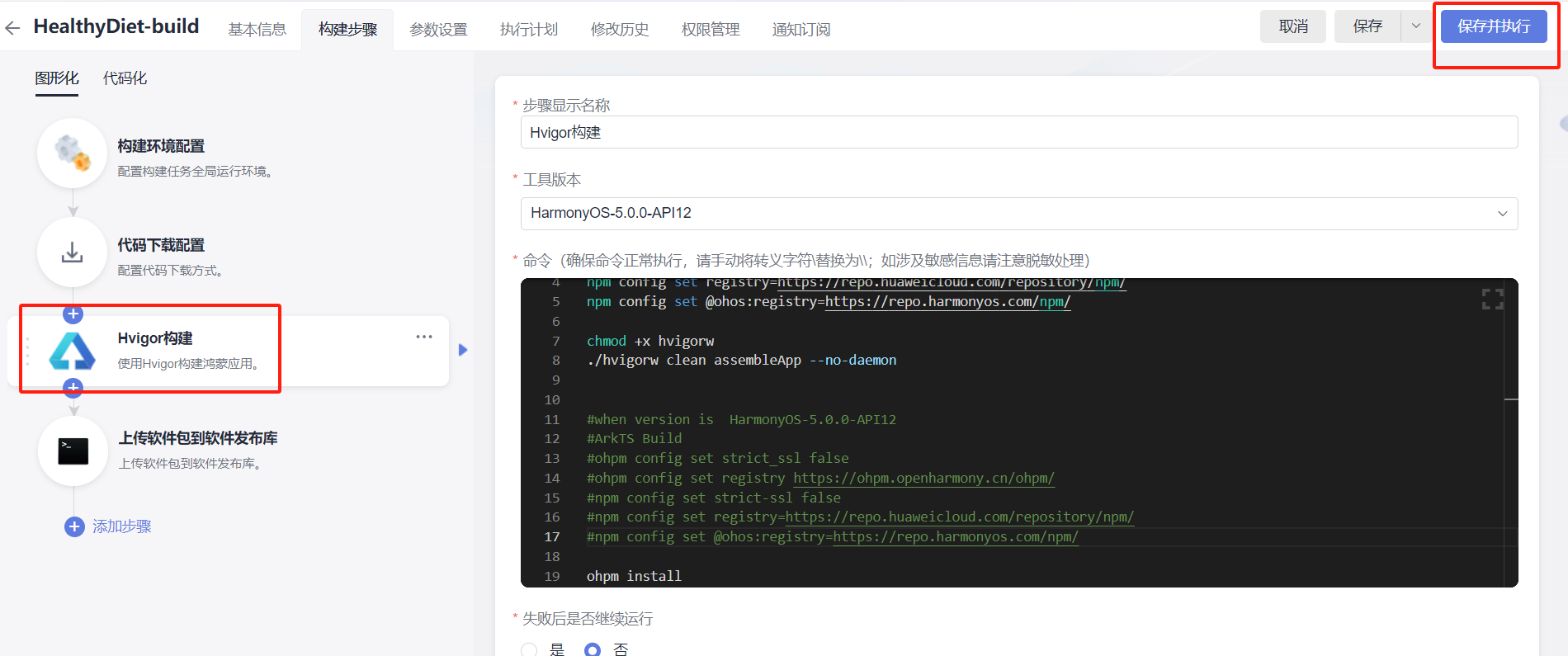 建议方案:编译构建提示脚本执行错误,无法完成编译构建,应该及时修改。