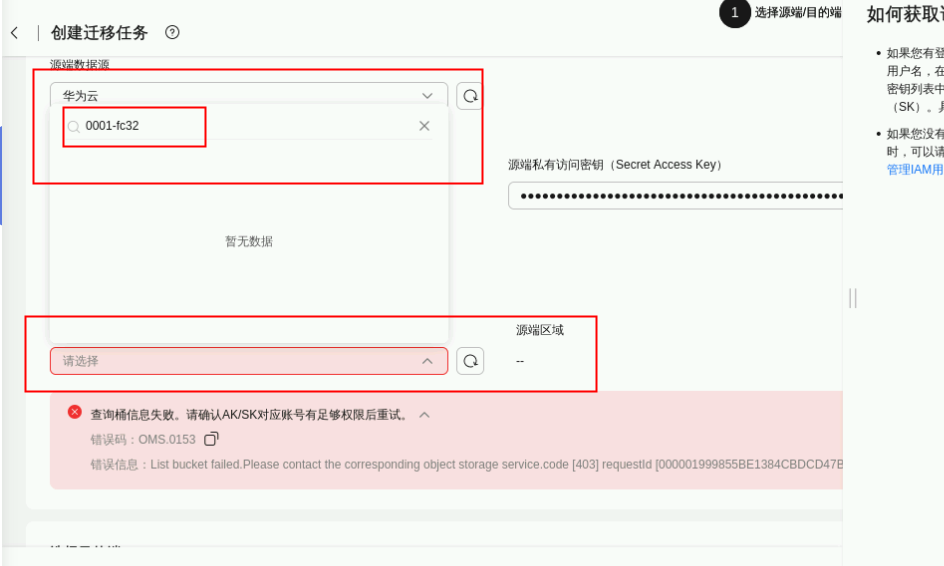 刚创建的数据桶按照指导去迁移,就根本搜不到说操作权限不够,权限不够你让我做个什么实验?