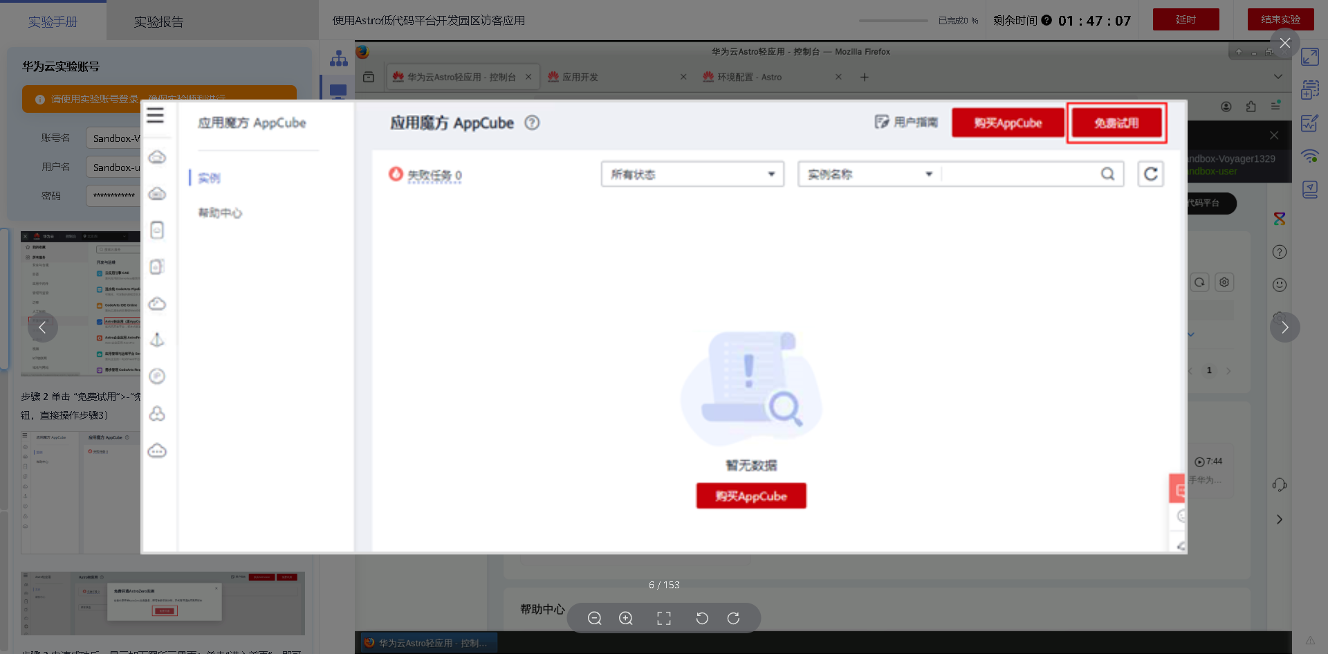【产品缺陷】华为云Astro案例体验库,云实验的实验手册内容过时 已实现 编辑 删除