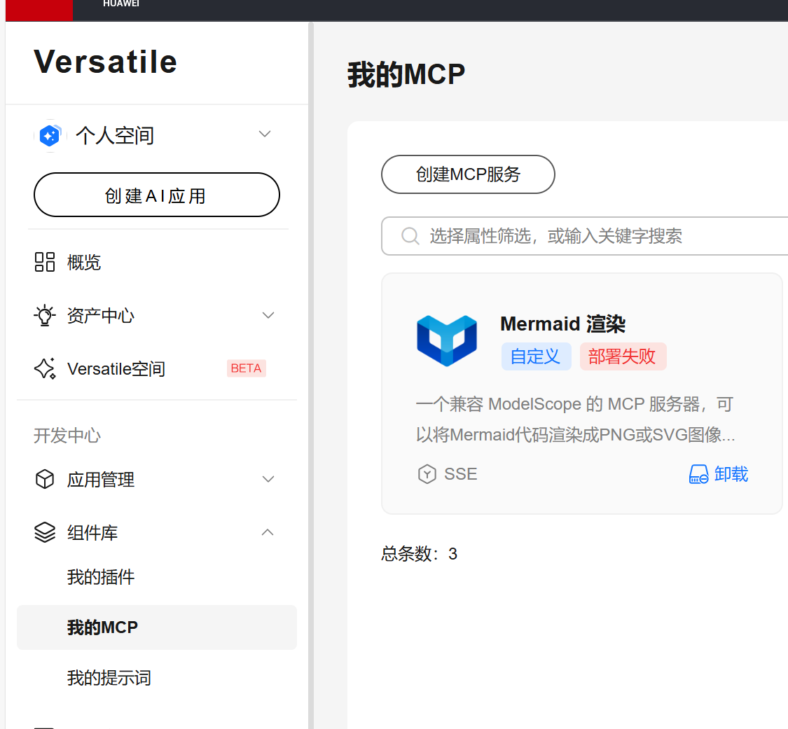 【产品缺陷】【Versatile智能体平台体验】Mermaid 渲染的MCP部署失败 已实现 编辑 删除