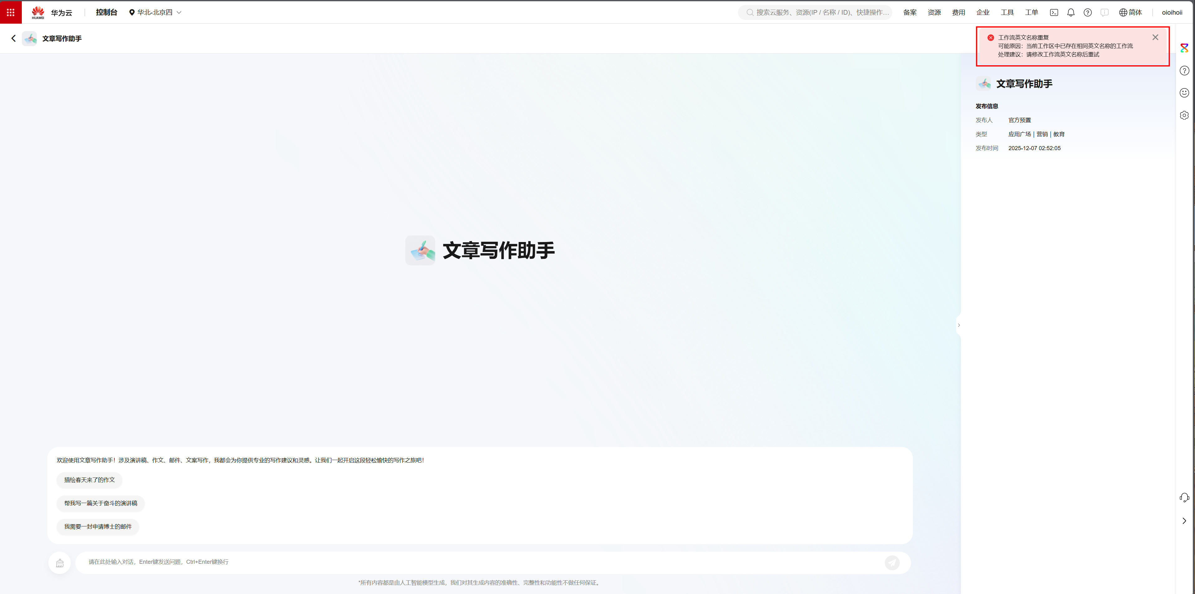 具体情况如下图,我的个人看法是,名称不应该作为区分的标识,对于智能体而言,我自己创建的极可能也叫文章写作助手,无法复制后我需要很多步骤操作后才能操作成功,这从用户的角度来看不合理!