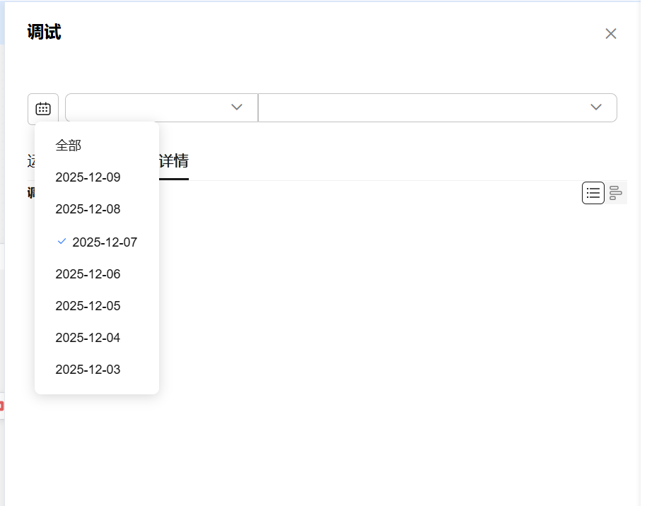 如下图,我想查看历史调试记录,但是点击日历我不知道哪天我调试了,只能一个一个点开来看,就会一片空白,这不合理