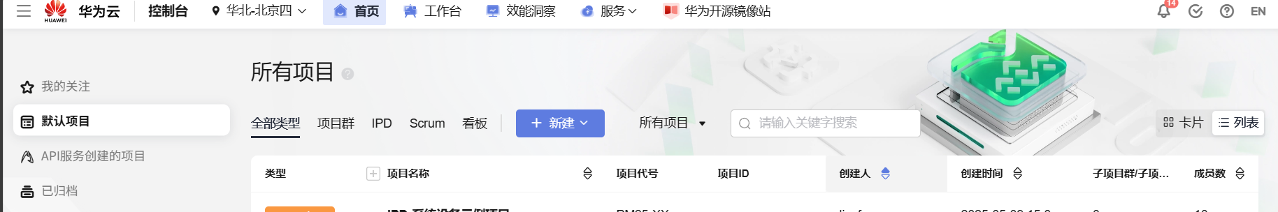 codearts,首页,所有项目列表显示时
