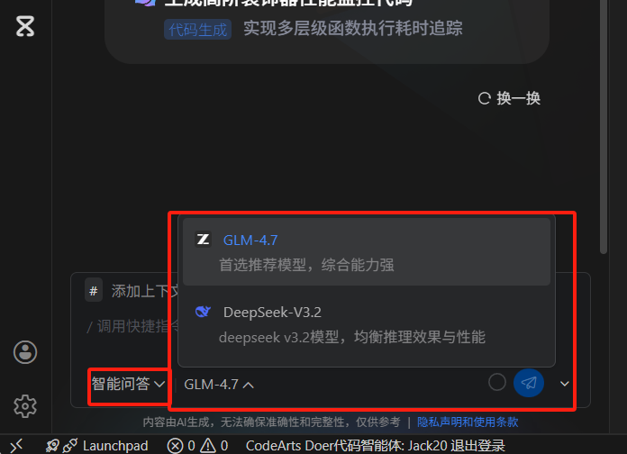 【用户体验】【CodeArts Doer体验官】智能问答模块中模型切换框UI异常 已实现 编辑 删除