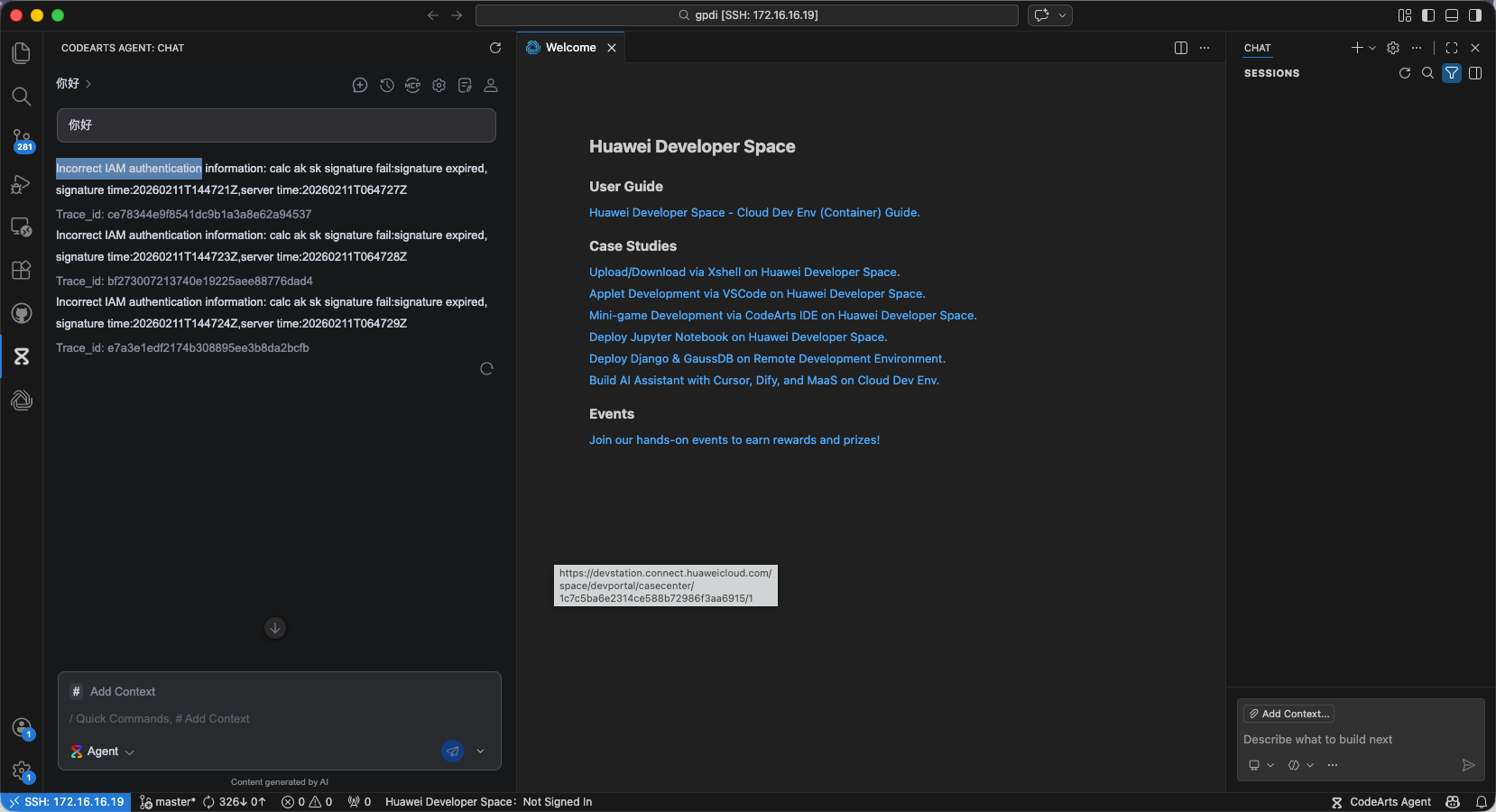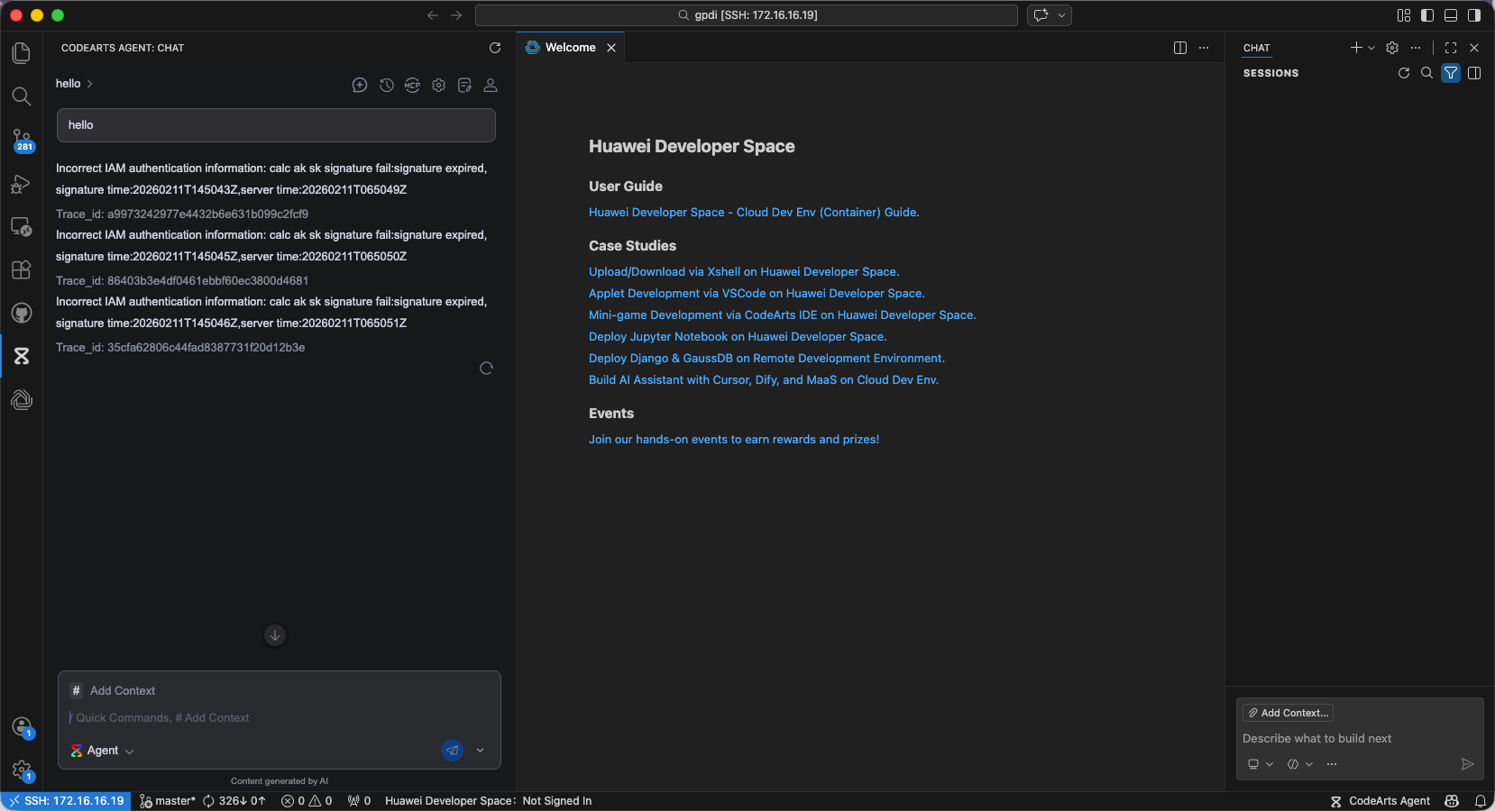【用户体验】CoderArt 代码智能体在 VSCode SSH 连接的项目中无法使用,报错:Incorrect IAM authentic 已实现 编辑 删除