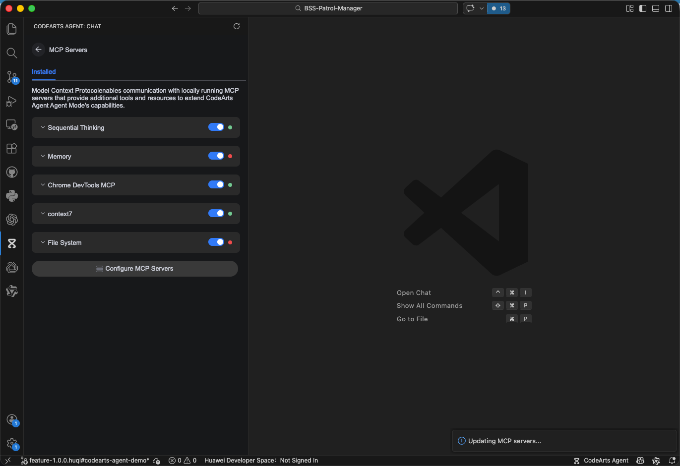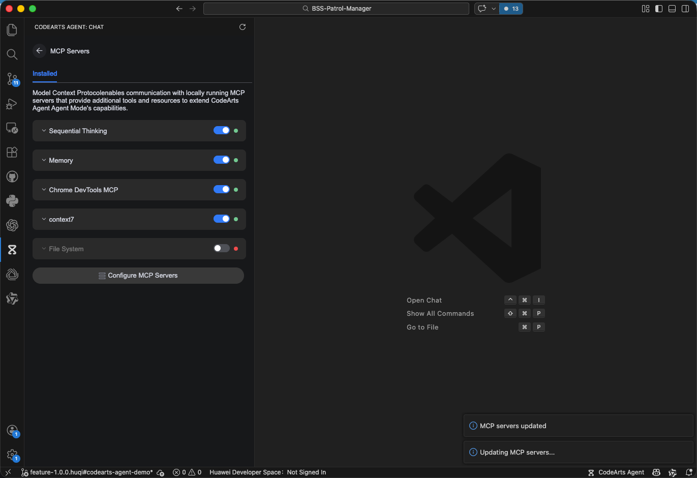 【用户体验】CodeArts 代码智能体 MCP 开关其中一个时会影响其他 MCP 已采纳 编辑 删除