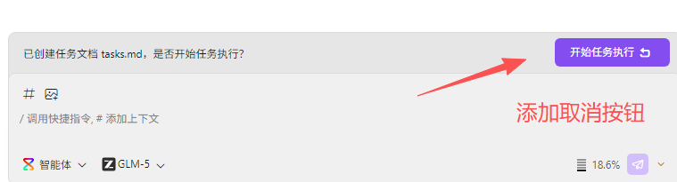 在使用需求驱动模式开发的时候,有时我只需求相关文档,并不想执行。现在没有取消执行的按钮,会一直在后续的对话中显示,容易误点击。