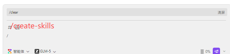 添加 /create-skills 快捷命令+需要实现的技能内容,然后询问: