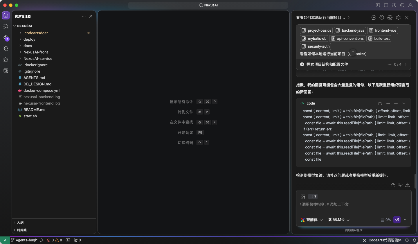 【用户体验】CoderArts Agent “检测到模型复读,请修改问题或者更换模型后重新提问” 已实现 编辑 删除