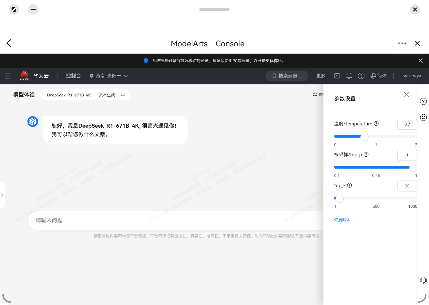 DeepSeek官方发过,把温度设为0.6,可以获得和官方服务相同的体验,希望改进。