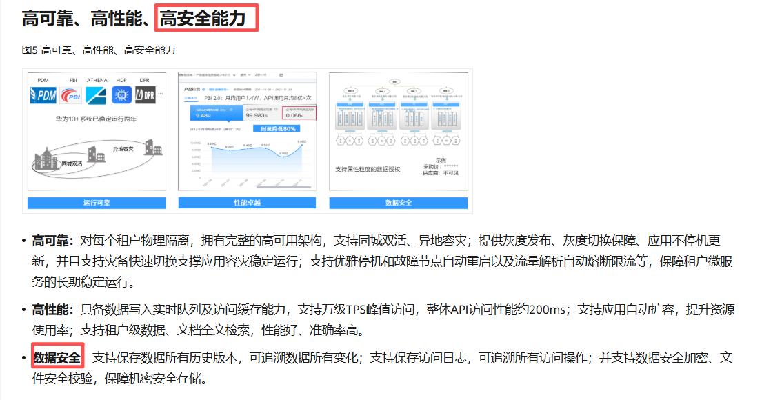 建议方案:【产品&文档体验优化活动】文档标题和内容不一致,标题是高安全能力,而内容是数据安全,不一致。应该像高可靠、高性能一样保持标题和内容的一致性。