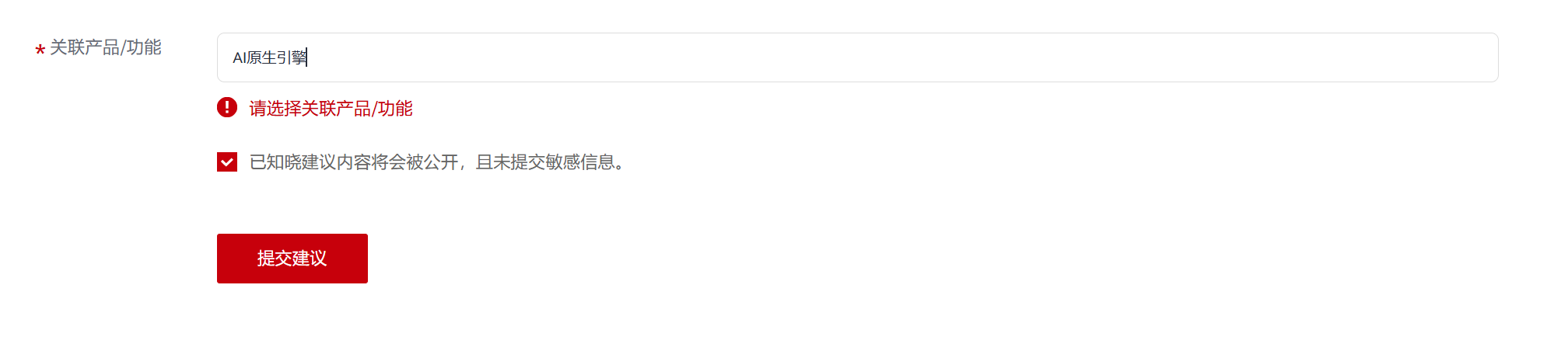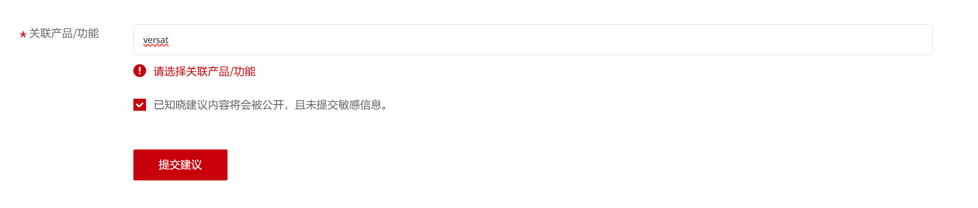 1、在使用Versatile的时候发现了一些问题,在云声上填写建议的时候,用关键词Versatile和AI原生引擎关键字关联不到产品