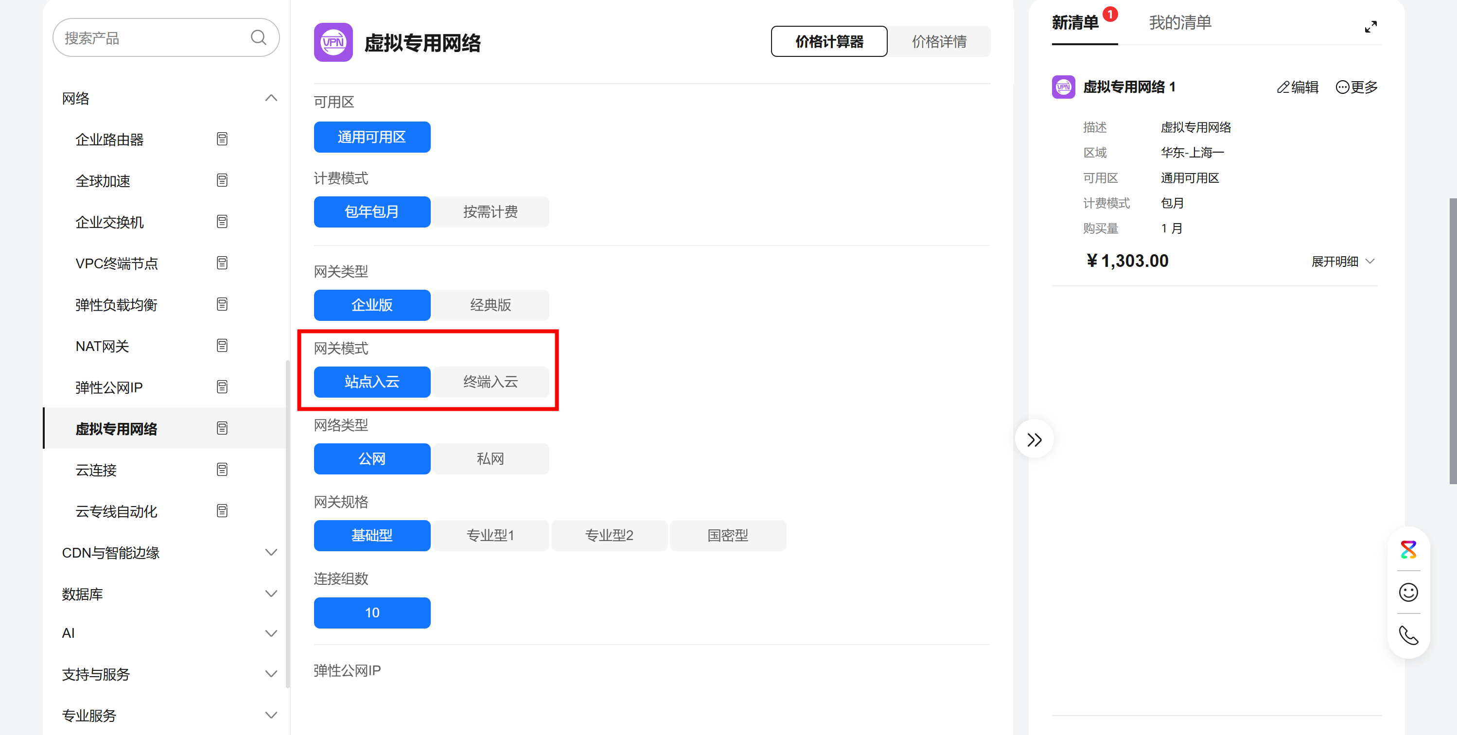 先进行网关模式选择,让客户先确认【站点入云】或【终端入云】,