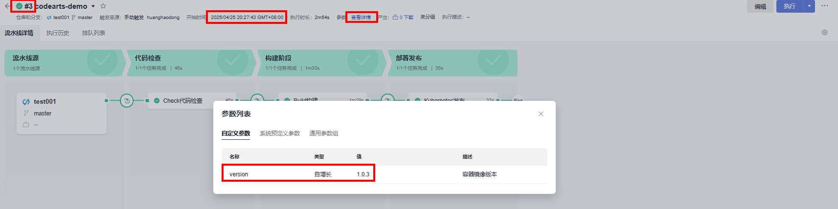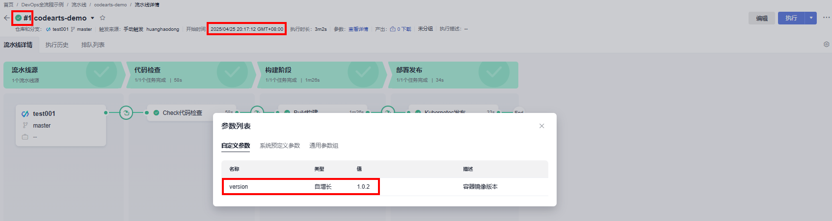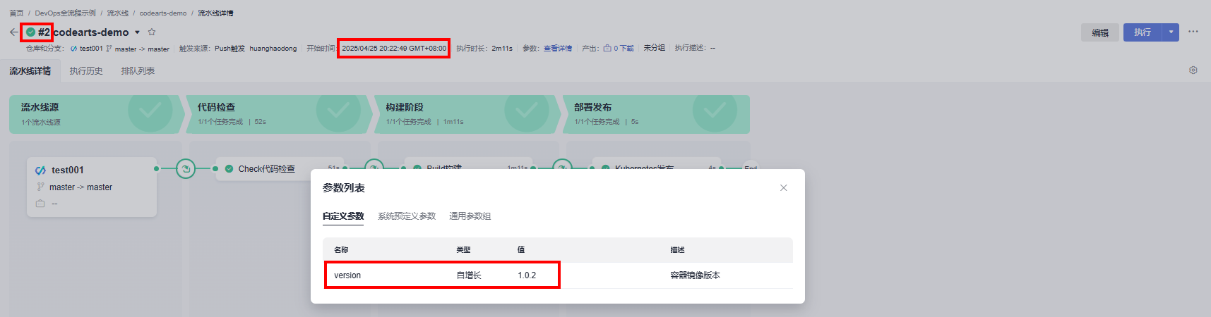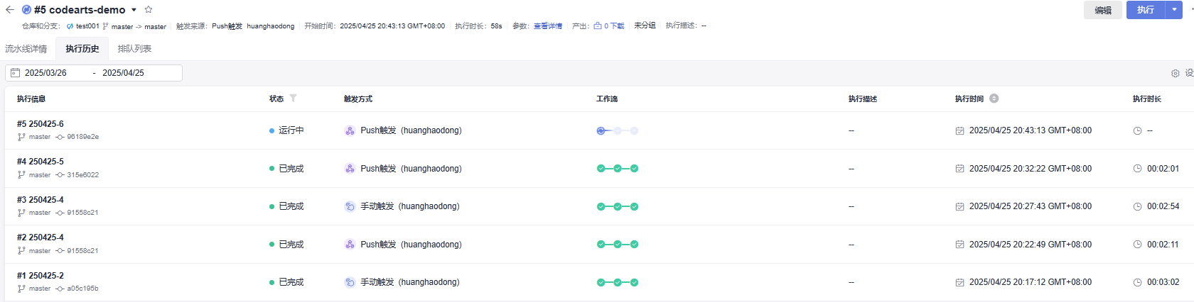 场景描述:CodeArts-Pipeline使用功能缺陷,在流水线任务重配置自增长参数,设置流水线的执行方式为代码提交触发流水线执行,本地提交代码后成功触发流水线执行,但是出发流水线自动执行多次自增长参数并未发生变化,手动执行参数正常增长。下方图片可以提供证明,当个流水线执行五次,两次手动执行自增长参数正常增长,push触发执行自增长参数没有增长。