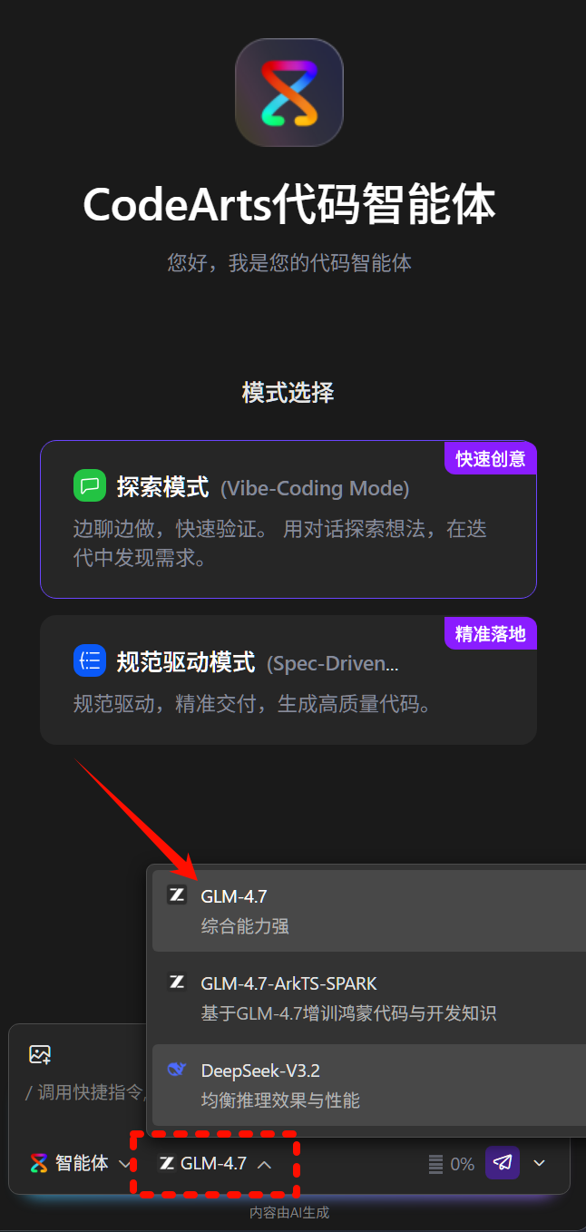 但是,下面这个文章《华为云码道(CodeArts)代码智能体接入智谱GLM-5》不是已经说了华为云码道智能体已经接入GLM5了吗?怎么下面看不到呢?我对此有些困惑