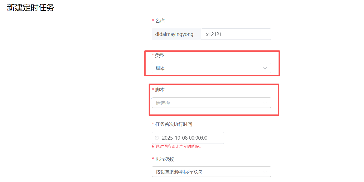 场景描述:【开发者空间体验官】开发者空间Astro 低代码开发新建定时任务有问题,新建定时任务中选择类型为脚本,脚本的下拉菜单会显示无相关数据,而脚本的要求不能为空,自己输入也不好使,这样新建定时任务功能就无法实现,请及时修复。
