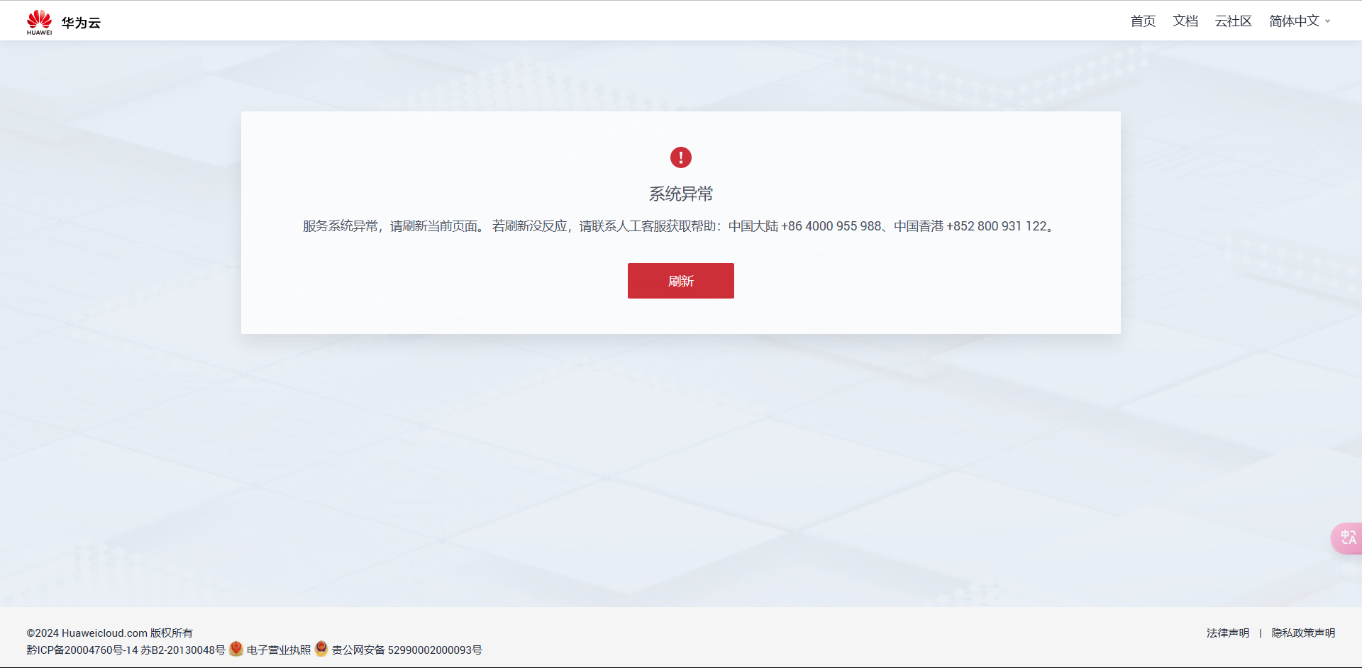 非常感谢您的反馈,您的问题已移交至专业工程师进行对接,可通过链接查看:https://console.huaweicloud.cn/ticket/?region=cn-north-4&locale=zh-cn#/ticketindex/serviceTickets,紧急情况下可以拨打4000-955-988进行求助。