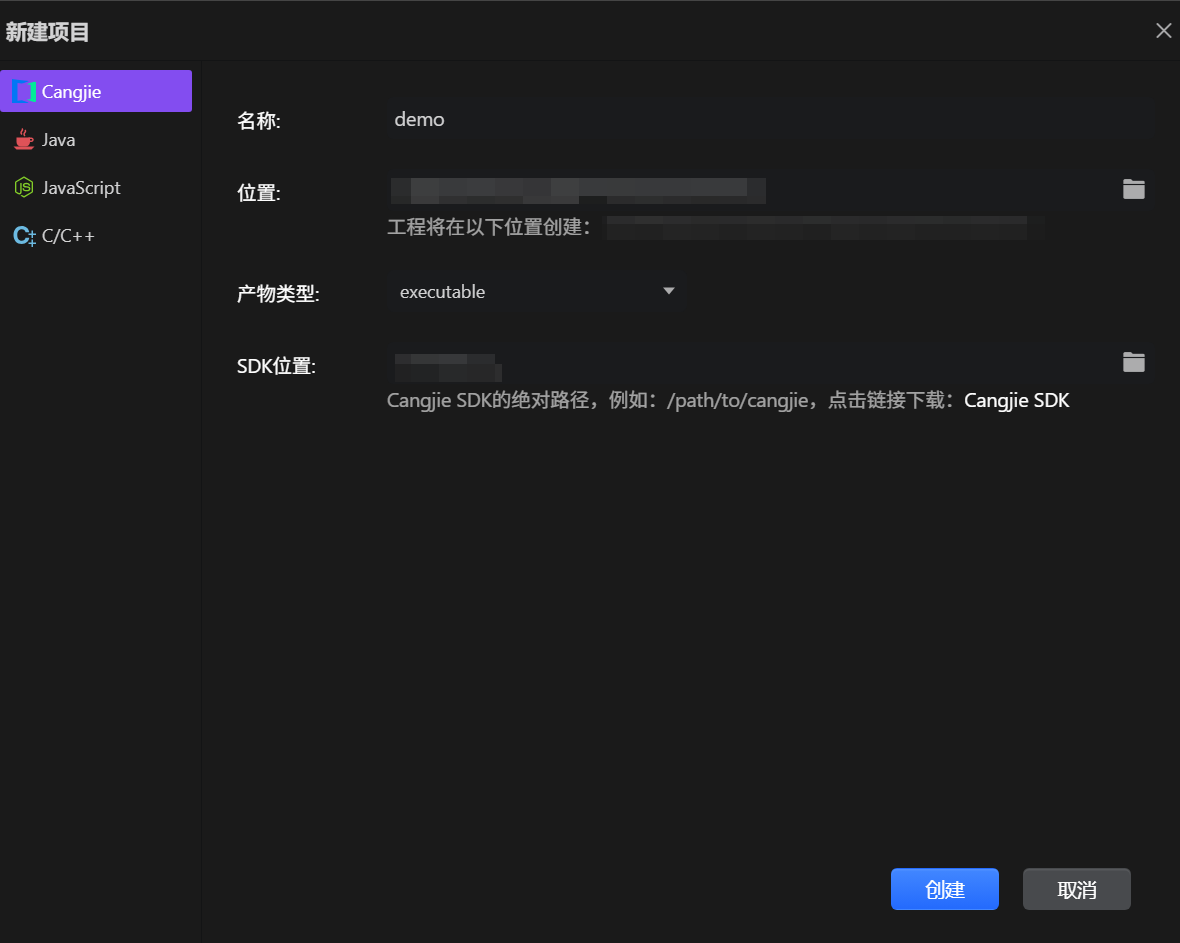 如下图所示的是,使用AI IDE新建仓颉工程。