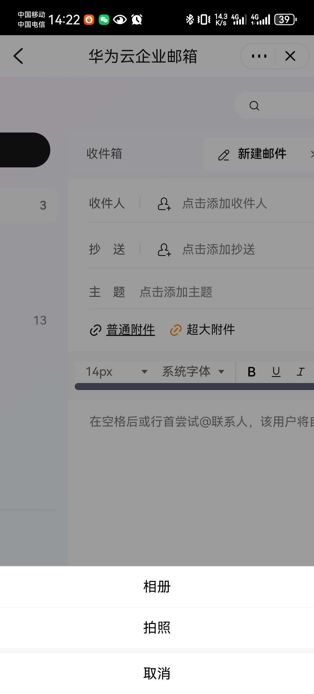 华为云APP上,华为云企业邮箱附件