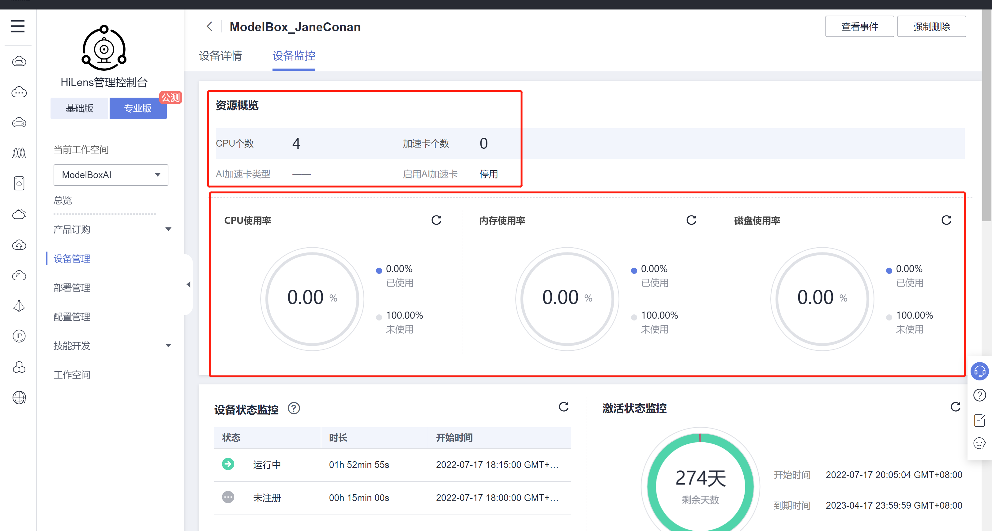 【用户体验】专业版HiLens管理控制台相关功能缺失及未知功能疑问 已实现 编辑 删除