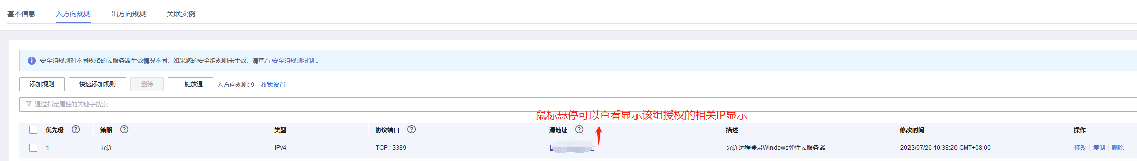2.设置的相关IP组之类的,鼠标悬停能直接显示里面授权的IP信息