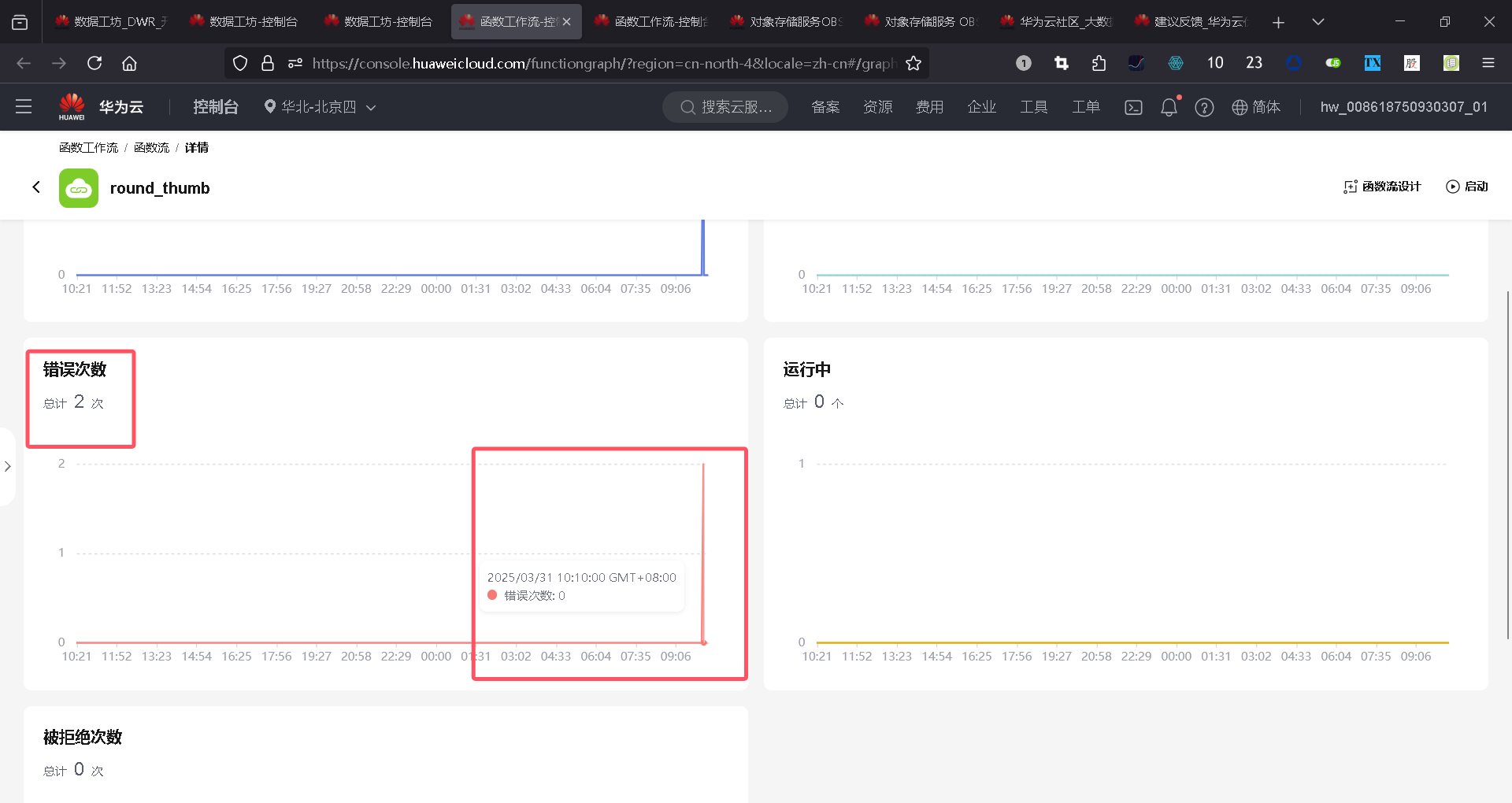 场景描述:函数工作流的图表左侧明明显示调用了2次,但是鼠标移动到曲线位置,还是显示0次调用。