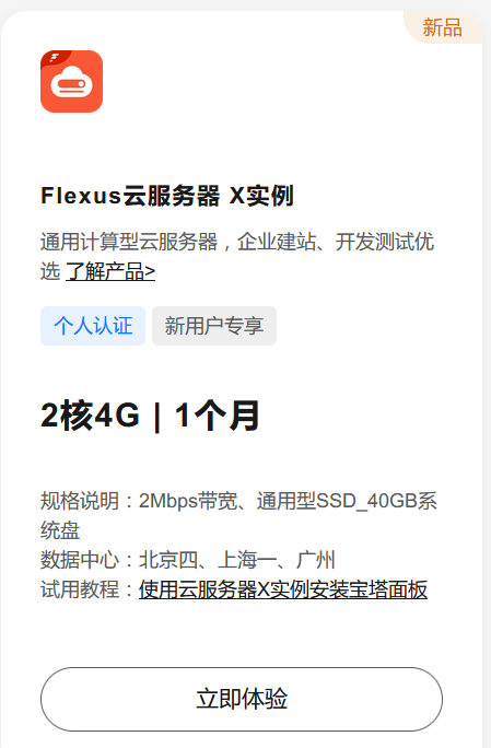 【产品缺陷】无法试用 Flexus云服务器 X实例 已实现 编辑 删除
